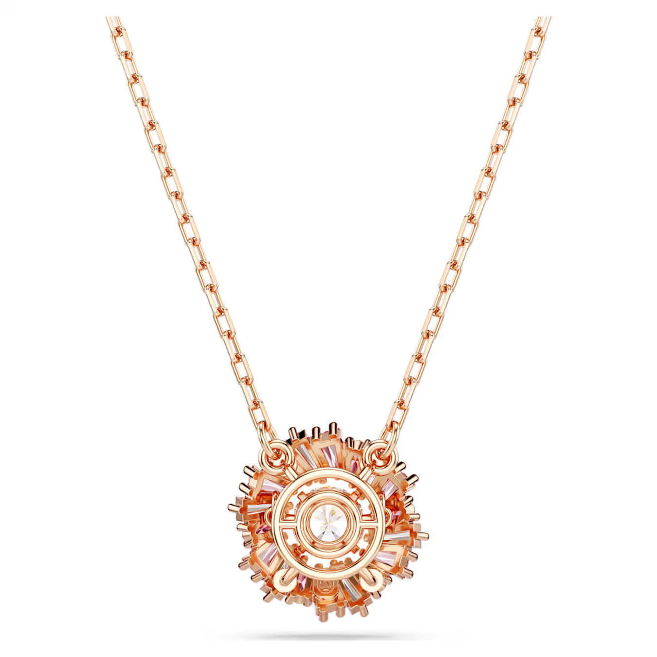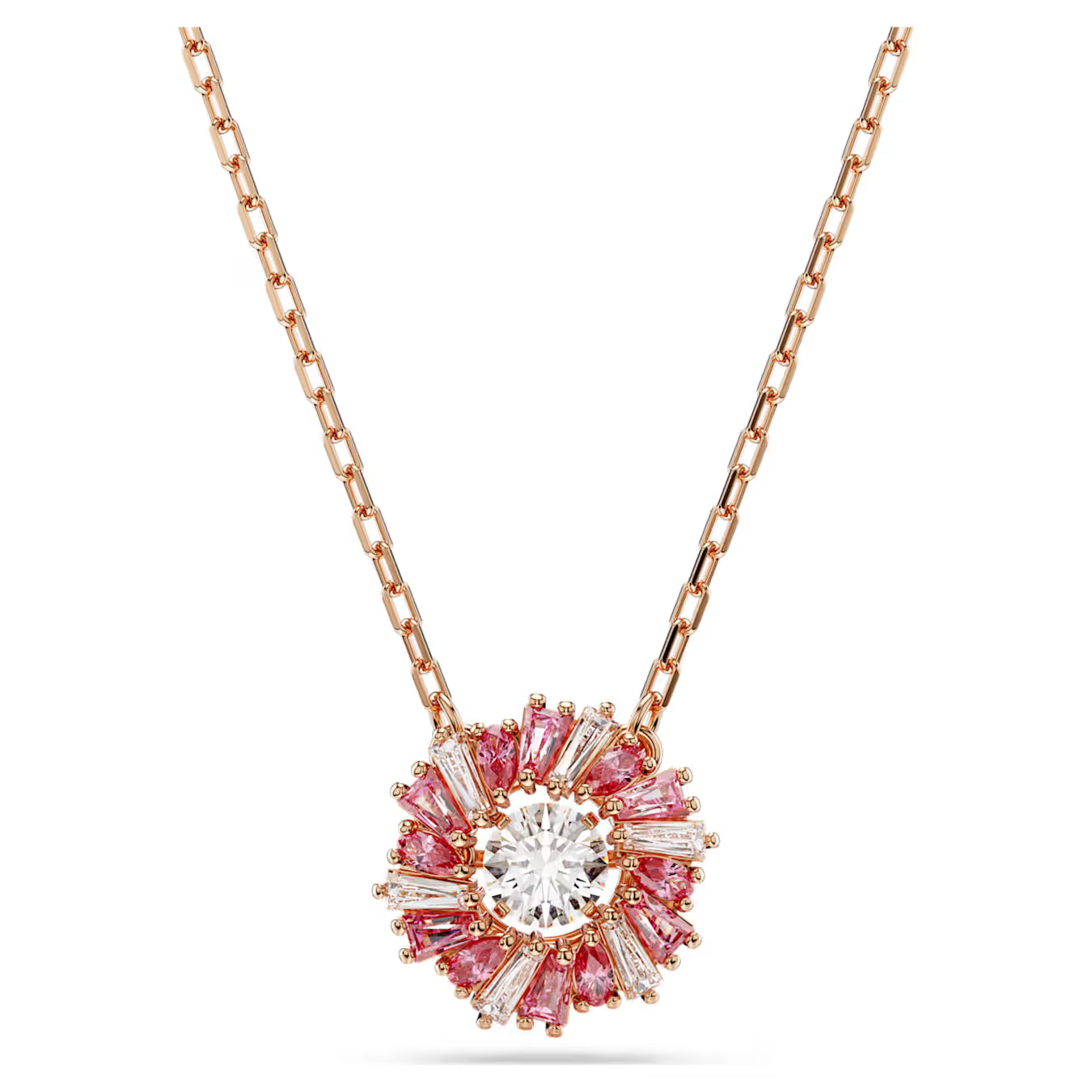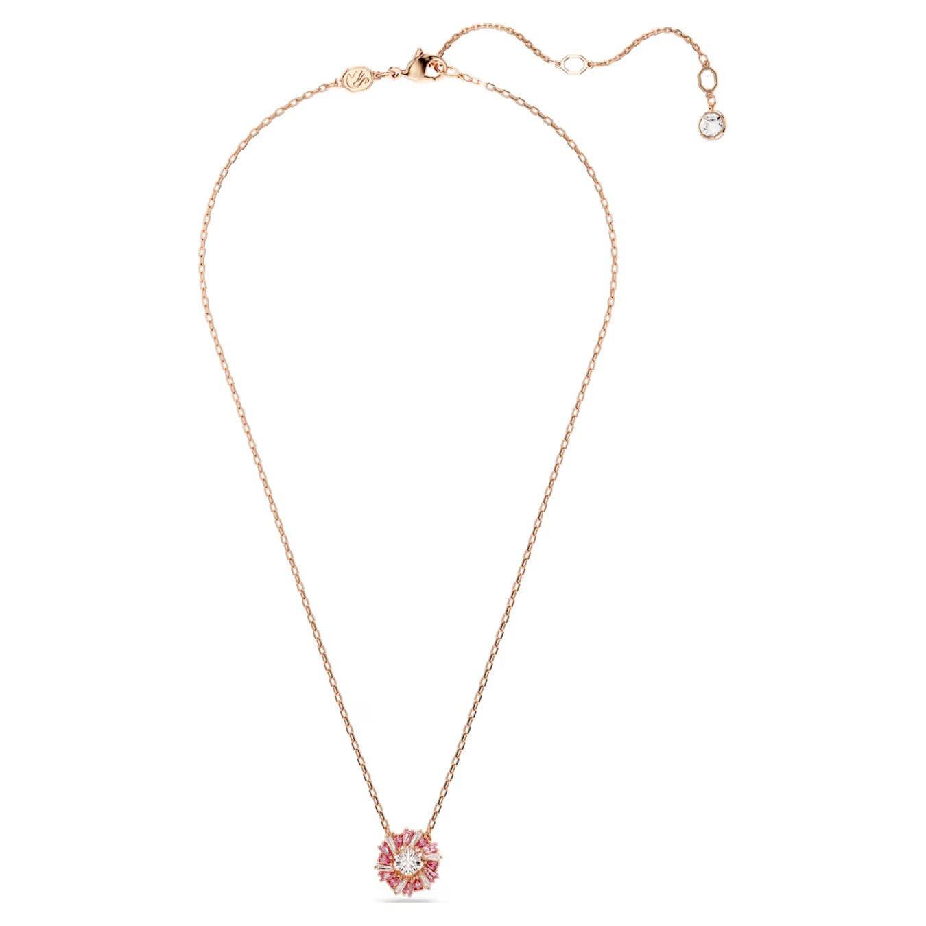 Swarovski Idyllia pendant celebrate Diwali with vivid color and light-filled wonder. Suspended from a delicate chain, this rose gold-tone plated jewelry features a flower motif crafted from shimmering pink and clear Swarovski Zirconia. A luminous dancing stone at the center radiates light from every angle. Pair this pendant with matching earrings for a joyful Diwali gift, making it an ideal gift.