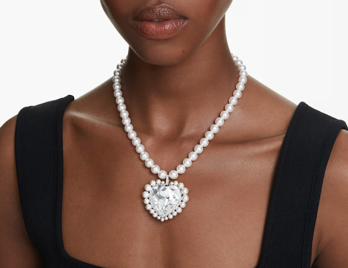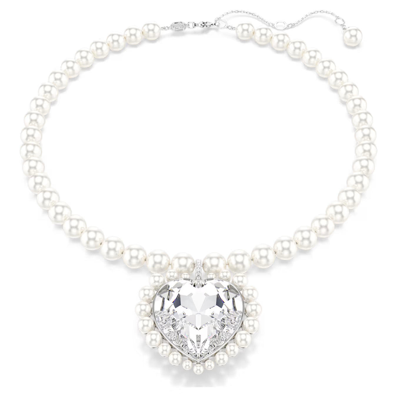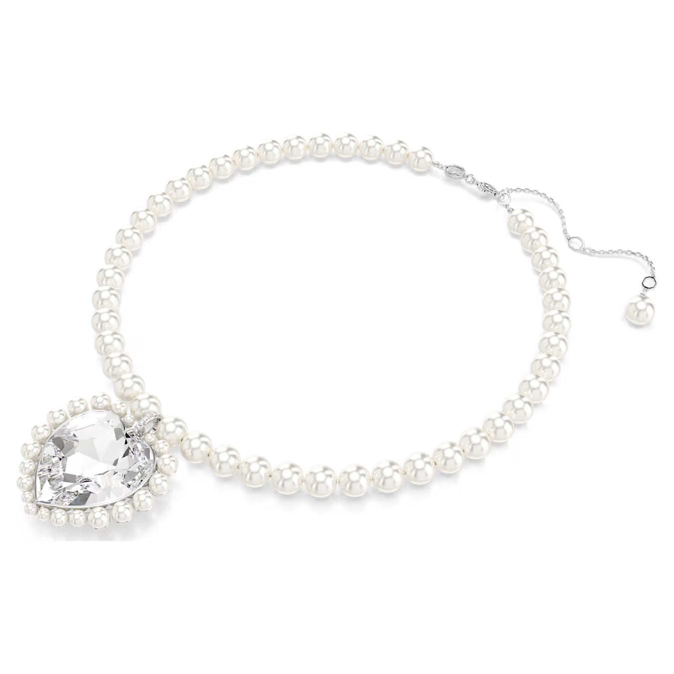 ultra-glamorous necklace, infused with Swarovski's finest craftsmanship, is an ode to luxury and light. The rhodium-plated design features Swarovski Crystal Pearls for maximum effect, both around the necklace and around the central heart-shaped crystal, in varying sizes. A beautifully crafted accessory for yourself or a joyful gift of love for someone you adore.