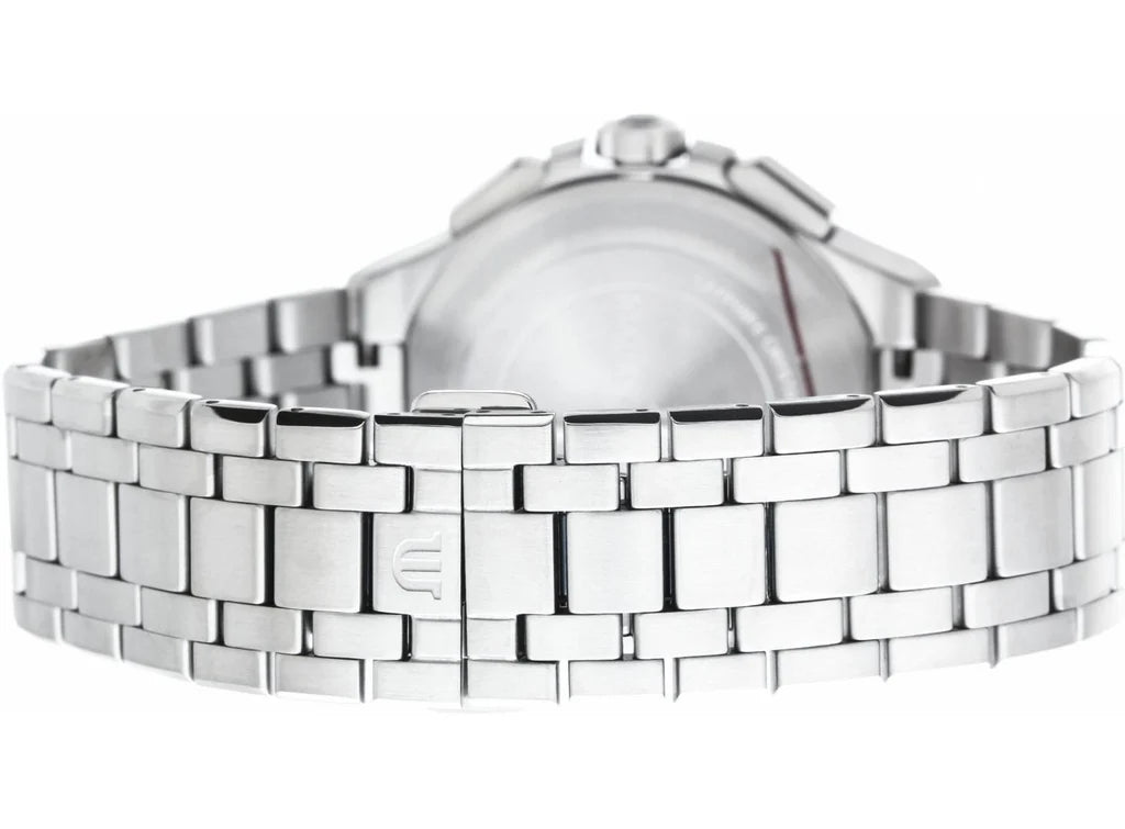 The Maurice Lacroix Aikon AI1018-SS002-430-1 blends bold sportiness with refined Swiss craftsmanship. Its robust stainless-steel case is paired with a striking sun-brushed blue dial featuring luminous hands and applied indexes for optimal legibility. Powered by a reliable Swiss quartz chronograph movement, this timepiece offers precise timekeeping along with stopwatch functionality. The scratch-resistant sapphire crystal ensures lasting clarity, while the 100-meter water resistance provides confidence for both everyday wear and active lifestyles. With its integrated stainless-steel bracelet and iconic six-arm bezel design, the AI1018-SS002-430-1 delivers the perfect balance of performance and contemporary style.