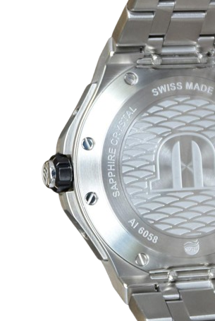 Maurice Lacroix Aikon Venturer AI6057-SSL52-630 packs diving-ready performance into a refined 38 mm silhouette. Built from brushed and polished stainless steel, its emerald Clous de Paris dial gleams beneath a double-coated sapphire crystal. Luminous hands and markers offer visibility down to 300 m, powered by the dependable ML115 automatic movement. With a smart internal bezel, integrated steel bracelet, and screw-down crown, the Venturer merges city elegance with ocean resilience perfect for the modern explorer.