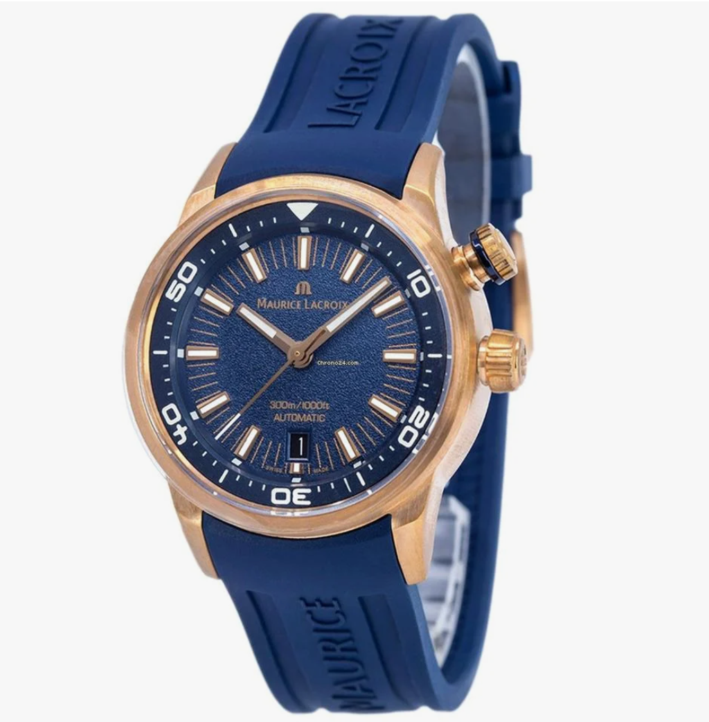 Maurice Lacroix Pontos S Diver PT6248-BRZ0B-430-4 is a bold blend of rugged adventure and refined Swiss craftsmanship. Housed in a 42 mm bronze case with a satin finish, this limited edition develops a unique patina over time, giving each piece its own character. The deep blue dial features luminous hands and indexes, paired with an internal rotating bezel operated by a secondary crown for precise dive timing. Powered by the Swiss automatic ML115 movement, based on the Sellita SW200-1, it delivers a 38-hour power reserve and dependable performance in any environment.