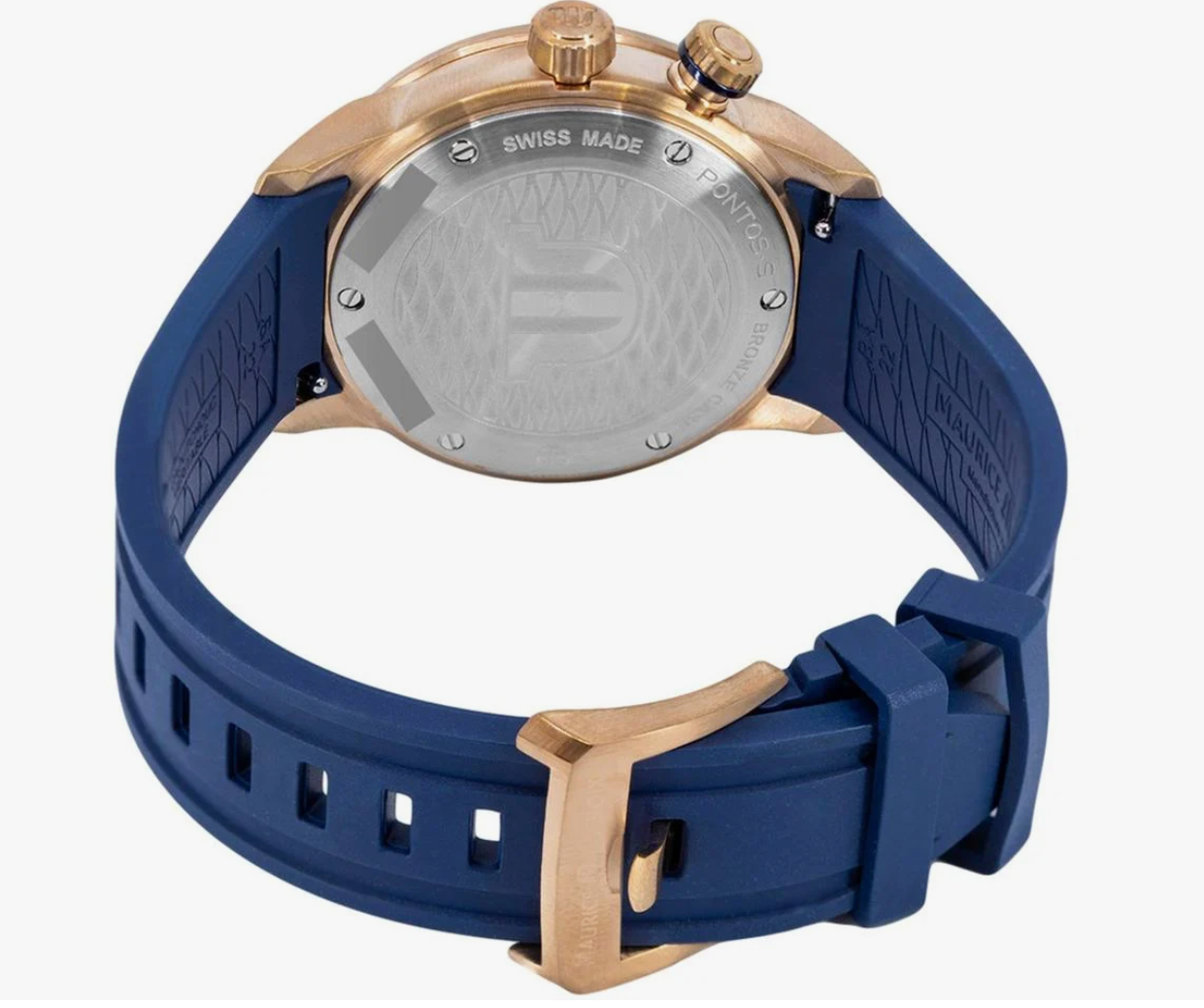 With an impressive 300 m water resistance, a scratch-resistant sapphire crystal, and a screw-down caseback, the Pontos S Diver is built for serious underwater exploration. It comes with two quick-change straps blue rubber for sporty wear and vintage-style dark blue leather for a more refined look both secured with a bronze pin buckle. This is a timepiece that transitions effortlessly from ocean depths to everyday style, making it a versatile companion for the modern adventurer.