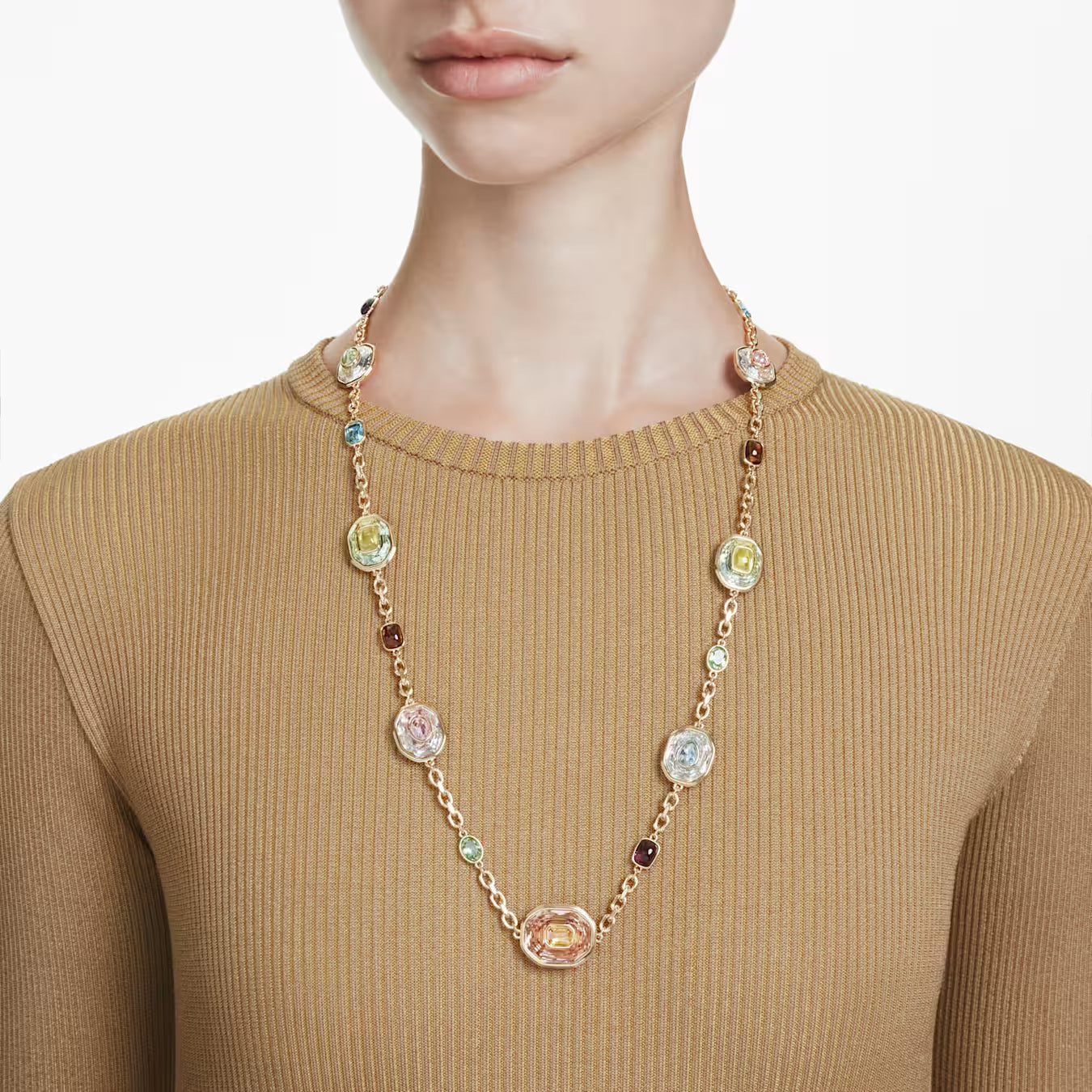 Swarovski Chroma strandage this expressive Chroma necklace provides a radiant burst of color that is perfect for layering with other jewelry. The gold-tone plated design is decorated with large octagonal crystals featuring smaller crystals stacked on top. Other small crystals are also placed along the chain. The vivid mix of shades adds sublime originality to any outfit.