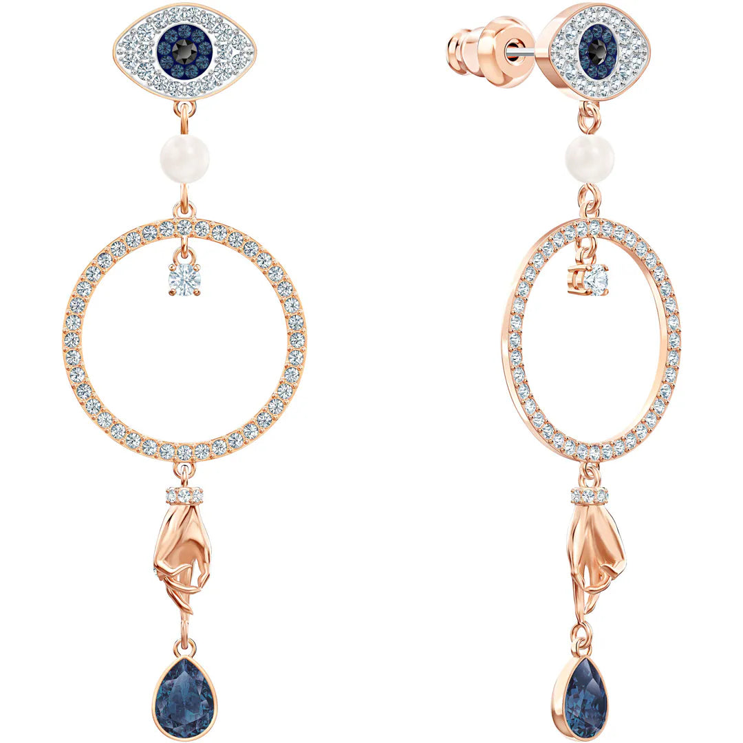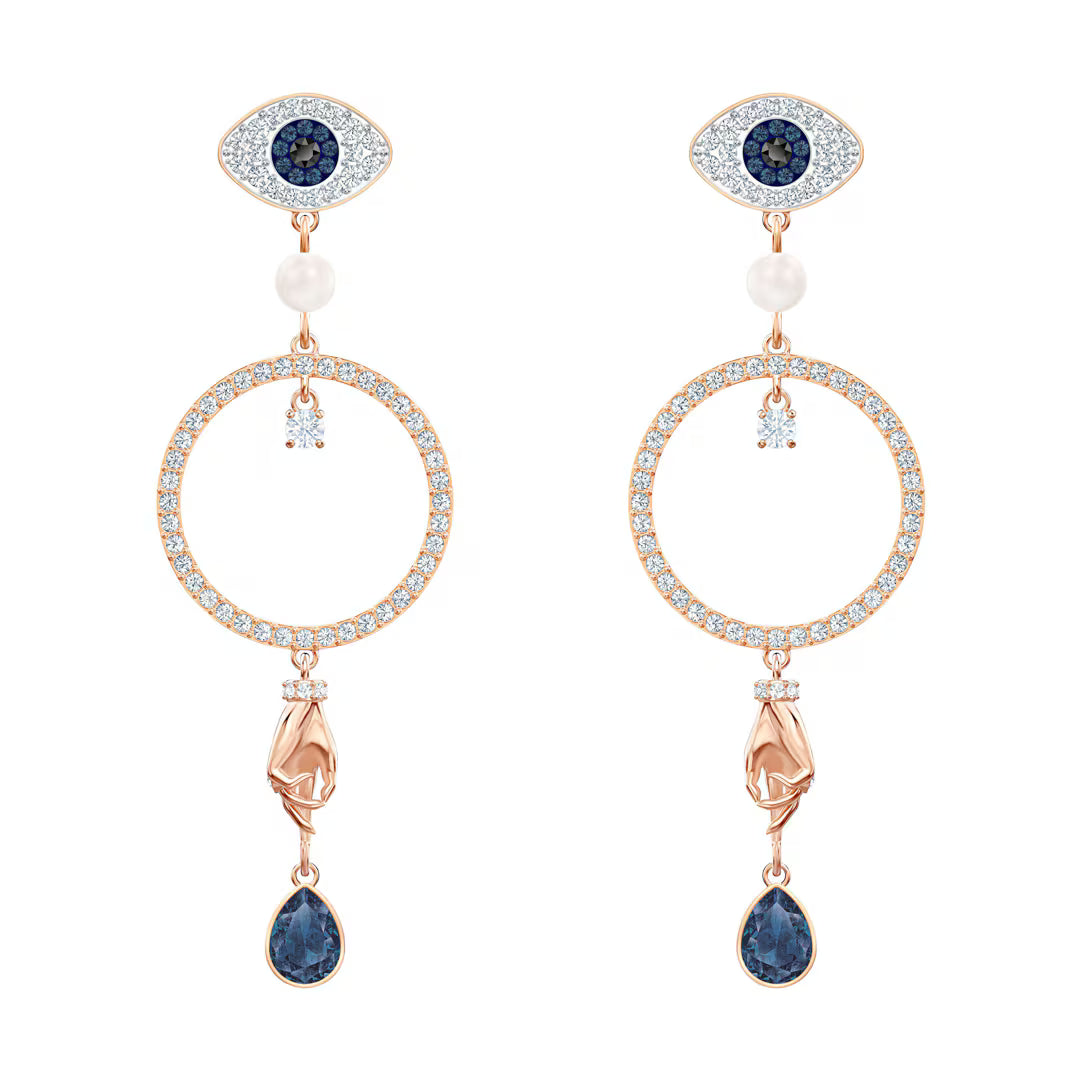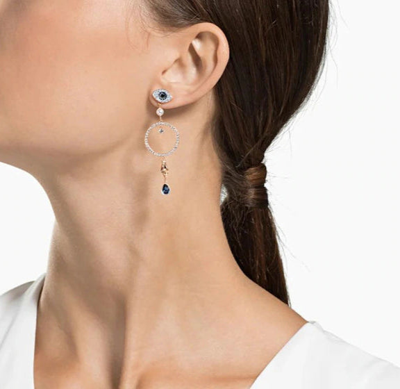 Swarovski Symbolic hoop earrings feature a captivating multicolored design, meticulously crafted with rose gold plating. Adorned with brilliant Swarovski crystals, they offer a radiant sparkle suitable for any occasion. The elegant combination of blue, rose, and white tones ensures versatile styling with various ensembles. Designed for lasting beauty, these earrings exemplify Swarovski's renowned craftsmanship and quality.
