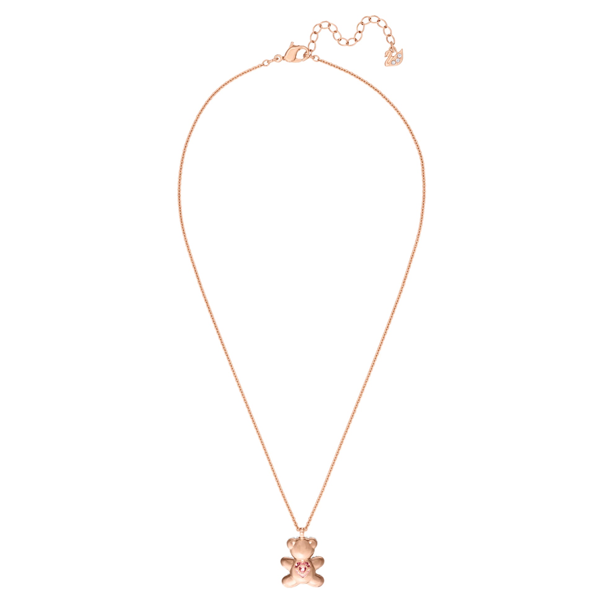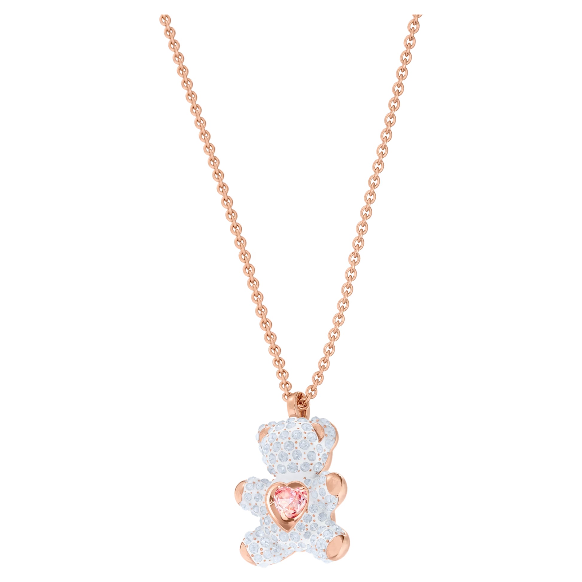 Swarovski exquisite Teddy pendant combines Swarovski's signature crystal Pointiage with a heart-shaped "dancing stone" concept. Crafted with precision, its brilliant sparkle and charming design make it suitable for everyday wear. The pendant is an ideal gift, presented on a rose gold-tone plated chain. This piece adds a touch of elegance and whimsy to any ensemble.