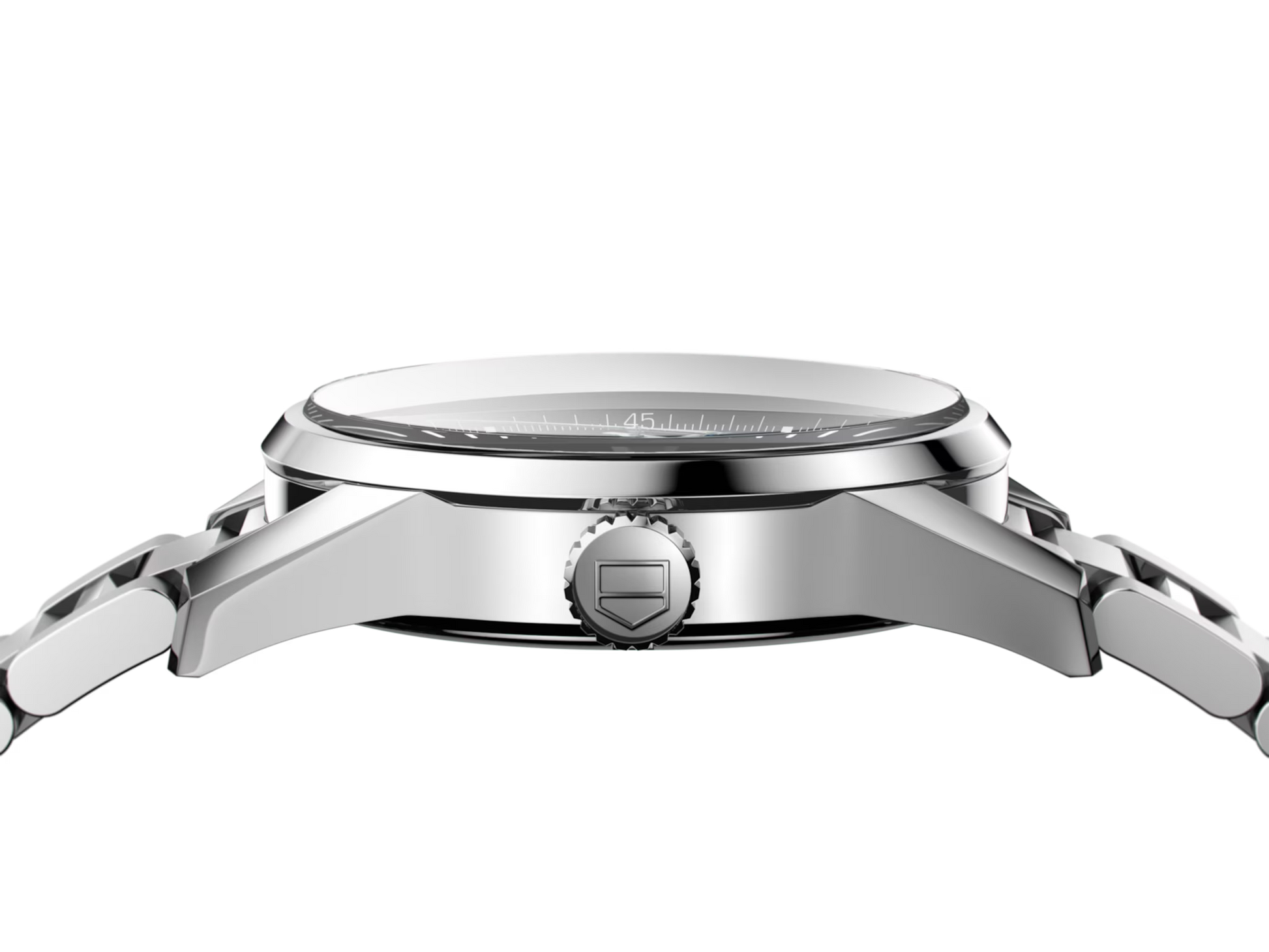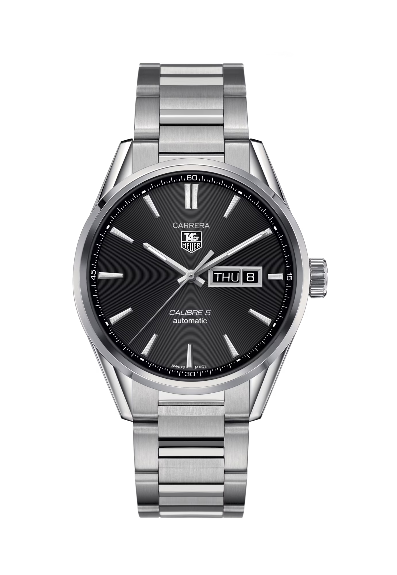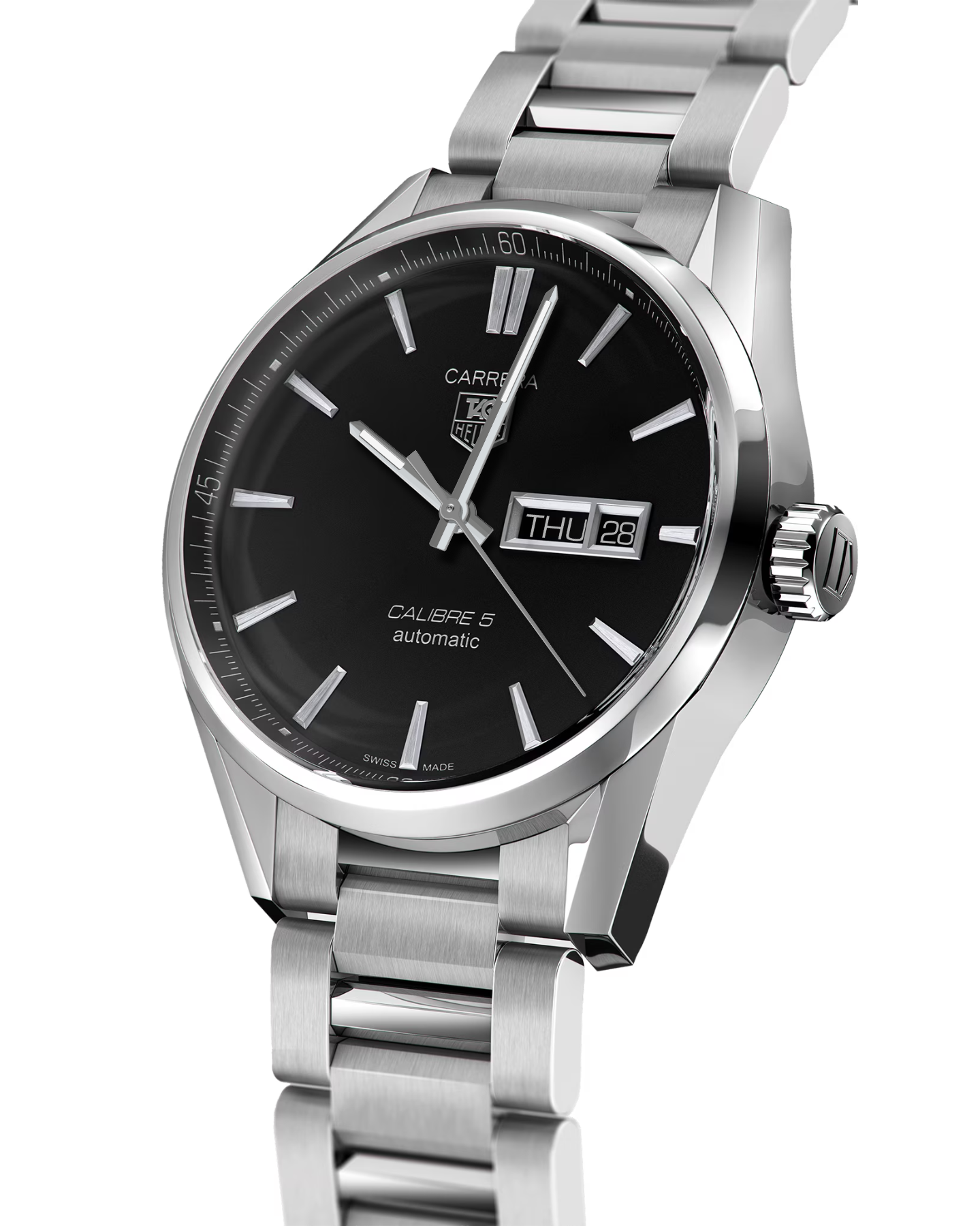 The TAG Heuer Carrera embodies the spirit of timeless elegance and Swiss craftsmanship. Its polished 41 mm stainless-steel case frames a sophisticated black sunray dial, featuring sleek silver-tone hands, applied hour markers, and a date window at 3 o’clock. Powered by a precise Swiss automatic movement, it offers refined performance with enduring style. A scratch-resistant sapphire crystal protects the dial, while the exhibition caseback reveals the intricate mechanics within. Completed with a stainless-steel bracelet and folding clasp, the Carrera is built for both comfort and class.