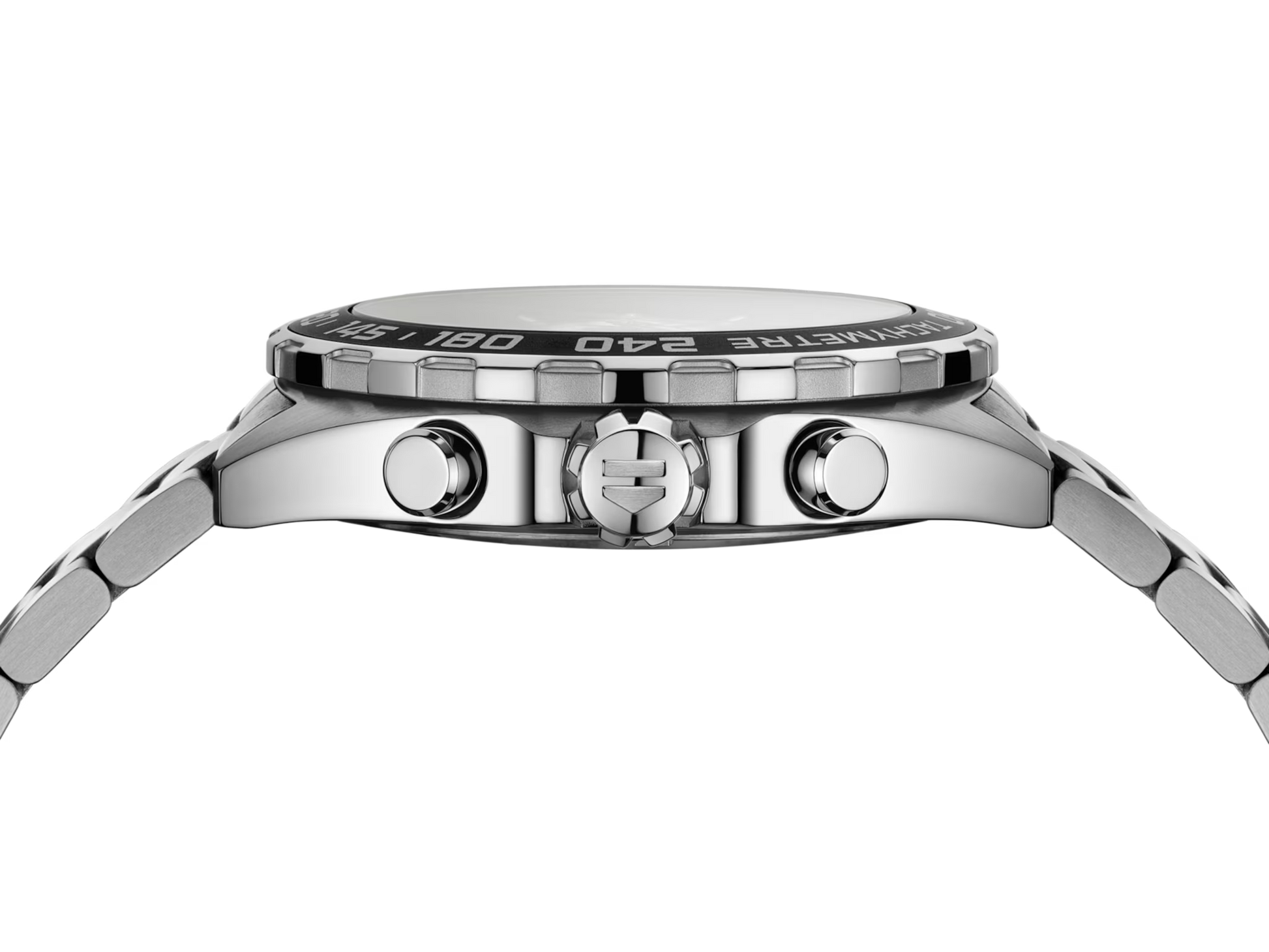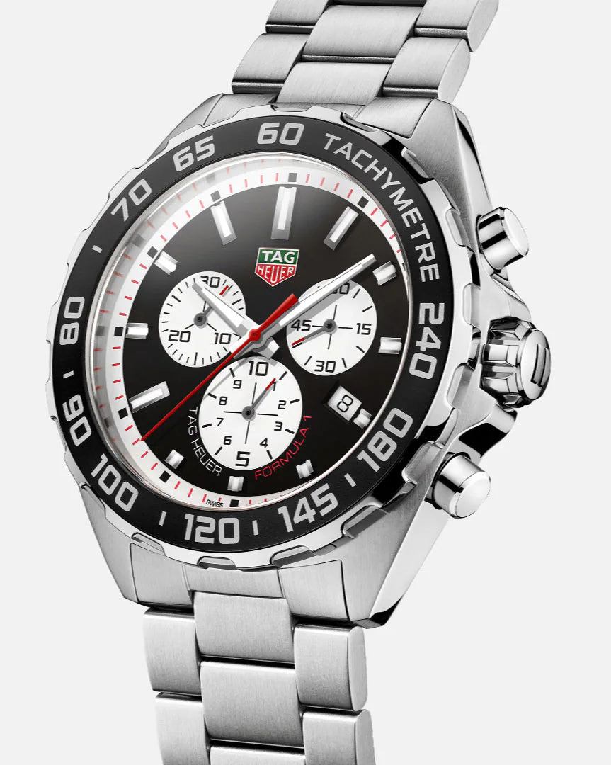 The Tag Heuer Formula 1 CAZ101E.BA0842 is a bold chronograph that reflects the brand’s racing heritage. Built with a robust 43 mm stainless-steel case and scratch-resistant sapphire crystal, it delivers both durability and refined elegance. Powered by a precise Swiss quartz chronograph movement, it features a tachymeter bezel, date display, and luminous hands for clarity in any light. The stainless-steel bracelet with folding clasp ensures a secure, comfortable fit. Water resistant up to 200 m, this timepiece is engineered for performance and everyday versatility.